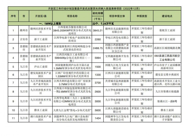 近日,江西省可再生能源信息中心發(fā)布了開(kāi)發(fā)區(qū)三年行動(dòng)計(jì)劃及整縣開(kāi)發(fā)試點(diǎn)屋頂光伏納入優(yōu)選清單。