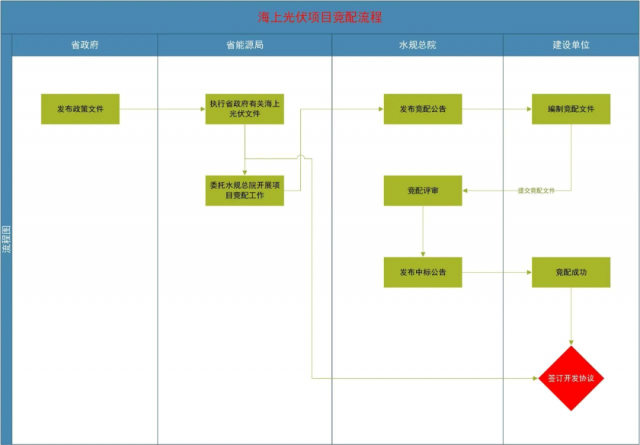 中國電建西北院主動融入和積極服務國家戰(zhàn)略,展現央企的使命擔當,更好的為行業(yè)發(fā)展作出積極貢獻,結合幾十年來在光伏行業(yè)“投建營”一體化積累的豐富經驗,依據行業(yè)領先的技術能力,從海上光伏自身特點出發(fā),遵循合規(guī)合理開發(fā)、科學精準施策的原則,研究梳理出一套海上光伏項目開發(fā)建設流程,供行業(yè)從業(yè)者參考。