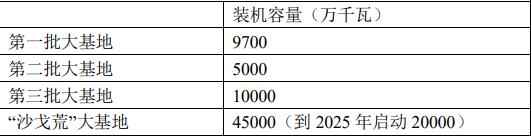 (1)大基地項(xiàng)目:合計(jì)約6億千瓦,其中“沙戈荒”大基地2億千瓦+第一批大基地1億千瓦+第二批0.5億千瓦+第三批1億千瓦+第四批1億千瓦。