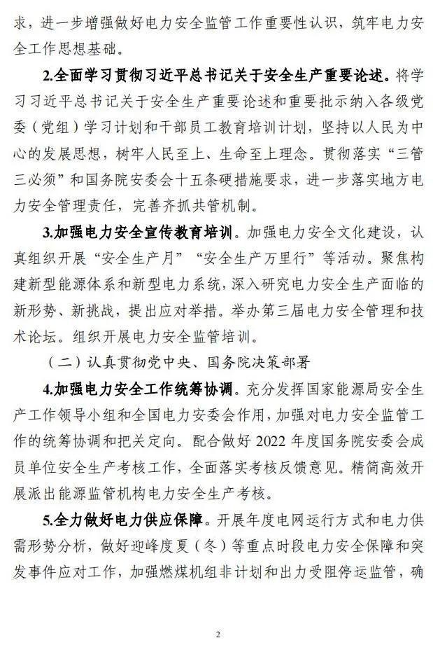 為貫徹落實黨的二十大精神,扎實做好2023年電力安全監(jiān)管工作,確保電力系統(tǒng)安全穩(wěn)定運行和電力可靠供應(yīng),推動全國電力安全生產(chǎn)形勢持續(xù)穩(wěn)定向好,我局制定了《2023年電力安全監(jiān)管重點任務(wù)》?,F(xiàn)印發(fā)給你們,請結(jié)合本地區(qū)、本單位實際,認真貫徹落實。