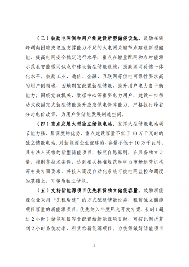 二、鼓勵(lì)新能源企業(yè)采用“先租后建”的方式配建儲(chǔ)能設(shè)施,租賃獨(dú)立儲(chǔ)能項(xiàng)目容量的的新能源項(xiàng)目,優(yōu)先納入年度風(fēng)光開(kāi)發(fā)方案。