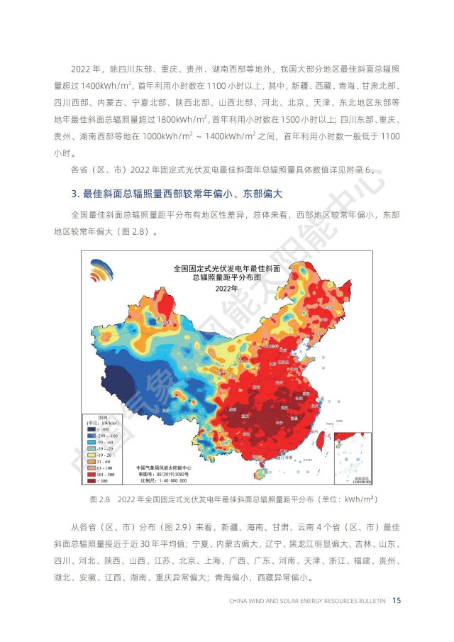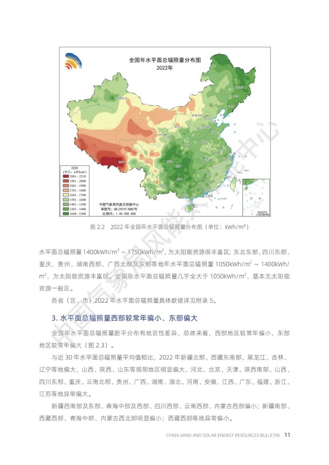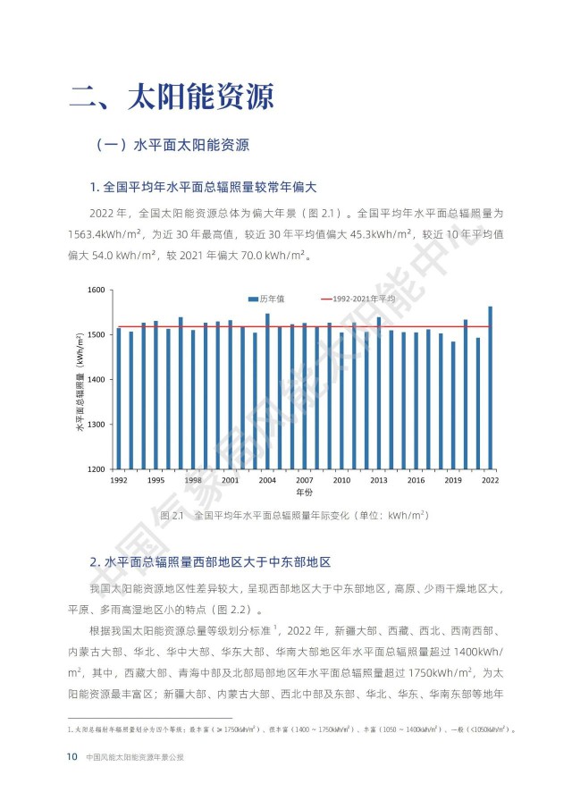 根據中國氣象局公布的《2022年中國風能太陽能資源年景公報》,太陽能資源每年都會發(fā)生變化。其中,2022年為太陽能資源大年,全國平均的年水平面總輻射量比近30年平均值高出約3%。因此,2022年的光伏發(fā)電量應該普遍偏好!