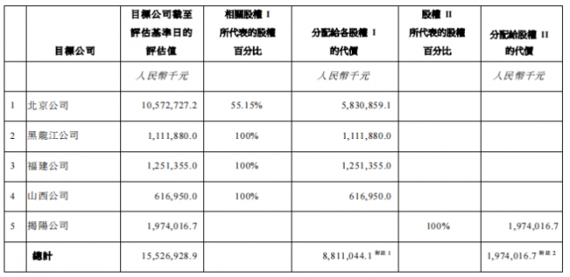 其中,公司與國家電投訂立協(xié)議I,據(jù)此,公司有條件同意收購,而國家電投有條件同意向公司出售股權(quán)I(包括于北京公司55.15%的股權(quán)、于福建公司、黑龍江公司及山西公司100%的股權(quán)),代價為人民幣88.11億元,將以現(xiàn)金結(jié)算。