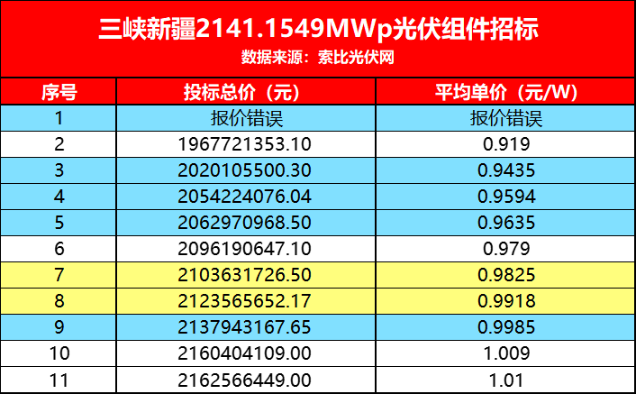 “瘋狂”的并不只有這一家企業(yè)。據(jù)悉,共11家企業(yè)參與這一項(xiàng)目投標(biāo),除一家企業(yè)報(bào)價(jià)明顯錯(cuò)誤外,其余10家企業(yè),有8家都投出1元/W以下的價(jià)格,整體均價(jià)僅0.9756元/W,這是行業(yè)內(nèi)首次出現(xiàn)n型組件平均價(jià)低于1元/W的大型招標(biāo),值得所有光伏人關(guān)注和思考。