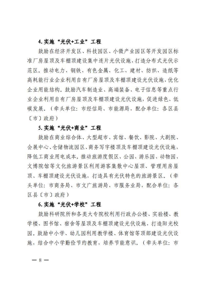 同時(shí)還提到全面推進(jìn)光伏多元化利用:實(shí)施“光伏+”十大工程,大力推進(jìn)整縣(市、區(qū))分布式光伏開發(fā),開展光伏資源排查等。