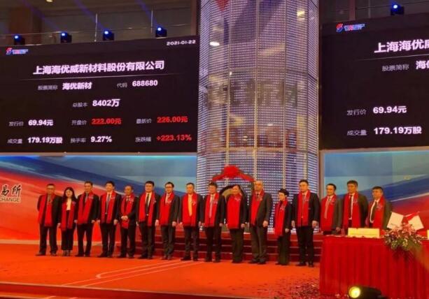 國內(nèi)光伏膠膜的領(lǐng)軍型企業(yè)---海優(yōu)新材在科創(chuàng)板正式上市。該公司今天開盤價格為200元以上,截至發(fā)稿時報價為218元,漲幅為211.7%。這一漲幅在去年至今的所有新能源A股、科創(chuàng)板漲幅中非常之高。