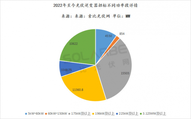 從招標情況來看,組串式逆變器占比八成以上,集中式逆變器占不到兩成。不同功率段招標中,175kW及以上招標規(guī)模最多,占比34%,196kW及以上占比25%,3.125MW及以上占比23%。