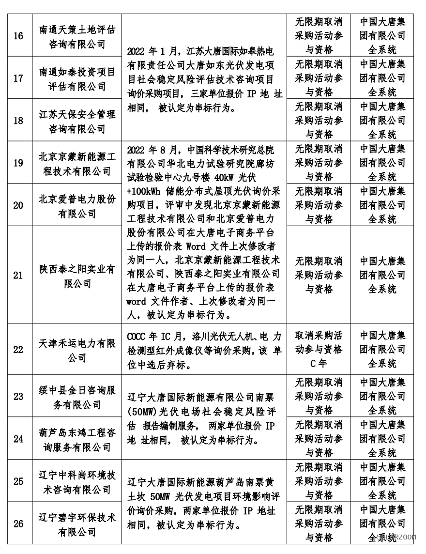 中國大唐集團有限公司關(guān)于供應(yīng)商不良行為處理情況的公告 (2023年第2批)