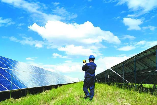 檢測(cè)光伏組件。中廣核新能源青海分公司供圖