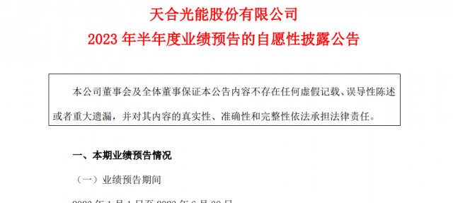 7月25日,天合光能發(fā)布2023年半年度業(yè)績預(yù)告,公司預(yù)計(jì)實(shí)現(xiàn)歸母凈利潤33.28-37.52億元,同比增長162.14%-195.61%;預(yù)計(jì)實(shí)現(xiàn)歸母扣非凈利潤35.03-39.27億元,同比增長204.40%-241.32%。