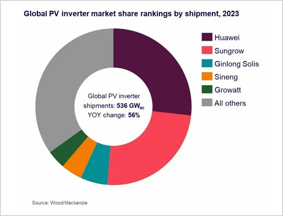 逆變器領(lǐng)域則完全不同,過去十年在全球市場真正有絕對實力的只有陽光電源和華為,競爭環(huán)境相對寬松,目前兩家企業(yè)合計控制了大約一半的市場,還有很大的進擊空間。