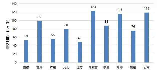 木聯(lián)能消息,已發(fā)布的2019年1月各重點省份的利用小時數(shù),重點省份包括安徽、甘肅、廣東、河北、江蘇、內(nèi)蒙古、寧夏、青海、新疆、云南等省份。本月內(nèi)蒙古平均利用小時數(shù)為123小時,排名第一。