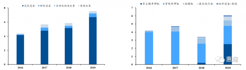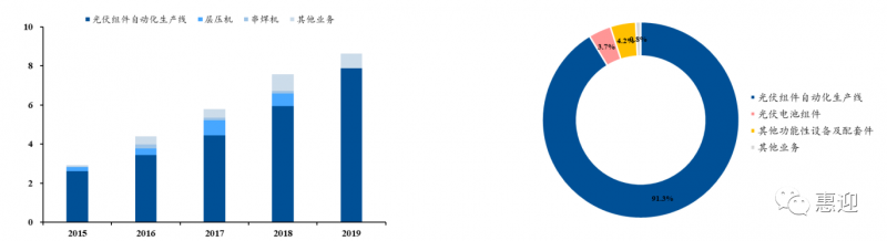 公司于 2009 年進入光伏行業(yè),致力于光伏電池和光伏組件的自動化成套設(shè)備的開發(fā)設(shè)計、生產(chǎn)和銷售,于 2013 年首創(chuàng)國產(chǎn)電池片串焊機,在 2017 年成功研發(fā)并量產(chǎn)多主柵串焊機和半片串焊機。公司光伏設(shè)備業(yè)務(wù)的政策聚焦于行業(yè)優(yōu)質(zhì)客戶,經(jīng)過多年來的積累,已經(jīng)形成較強的技術(shù)優(yōu)勢和品牌效應(yīng),設(shè)備受到隆基股份、晶科能源、中國節(jié)能等業(yè)內(nèi)一流廠商的青睞。