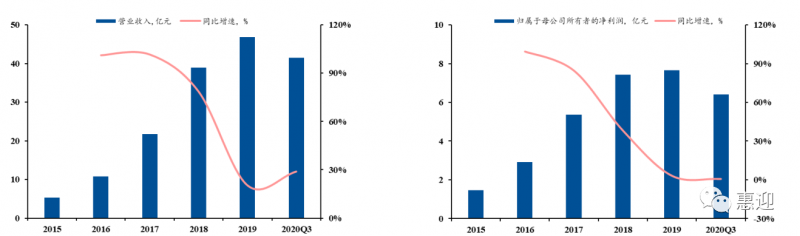 公司是光伏自動化組件設(shè)備的頭部供應(yīng)商,下游客戶涵蓋國內(nèi)多家知名光伏組件企業(yè),同時積極布局新型組件設(shè)備,向壁壘較高的電池設(shè)備領(lǐng)域延伸,探索新增長點。2015-2019 年,公司業(yè)績大幅增長,營業(yè)收入從 2.92 億元增長至 7.9 億元,CAGR 為 31.08%。截止 2020 年第三季度,公司的歸母凈利潤為 0.65 億元,同比增長 65%,超過 2019 年全年歸母凈利潤。合同負債已達 3.71 億元,為 2021 年業(yè)績奠定良好基礎(chǔ)。2019 年,光伏組件自動化生產(chǎn)線作為公司的主營業(yè)務(wù),占總營收的 93.11%,輔之以串焊機、層壓機等價值量較高的單機設(shè)備。