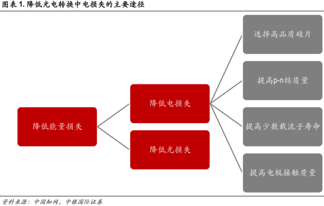 一般而言,提升光伏電池片光電轉(zhuǎn)換效率的核心是降低光電轉(zhuǎn)換過程中的能量損失,主要是光損失與電損失。其中降低電損失的主要方法包括選擇高品質(zhì)硅片、提高p-n結(jié)質(zhì)量、提高少數(shù)載流子壽命、降低材料體電阻等。在提高少數(shù)載流子壽命這一途徑中,通過改善晶面缺陷來降低襯底硅片表面的復(fù)合速率(即鈍化接觸)是光伏電池提效的重要研究和產(chǎn)業(yè)化方向。