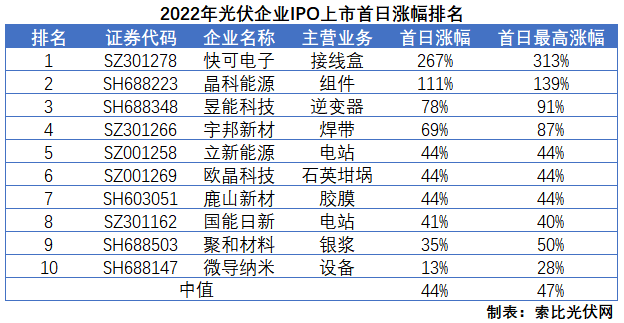 企業(yè)超募、股價(jià)暴漲、股民暴賺,這就是2022年成功登陸A股市場(chǎng)的10家光伏企業(yè)交出的“答卷”。而2023年,阿特斯、潤(rùn)陽(yáng)股份、美科股份、新特能源等一眾龍頭和新貴,也即將登陸A股市場(chǎng)。