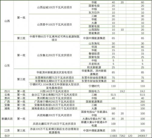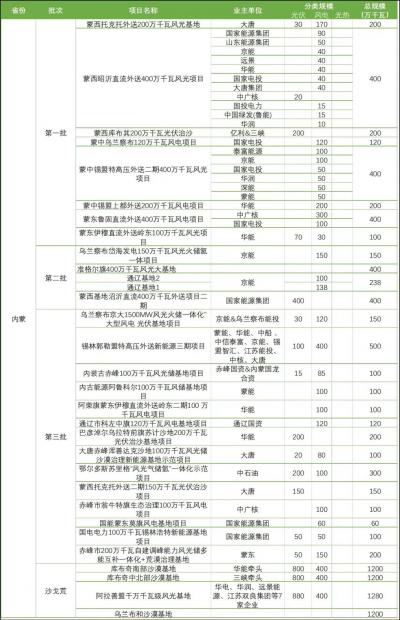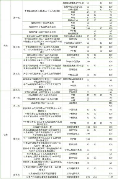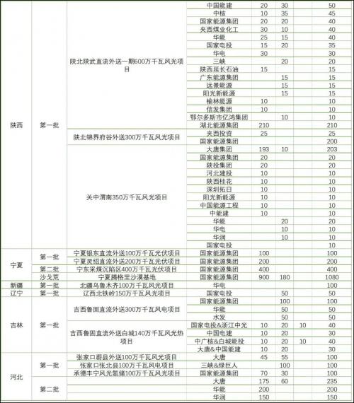 隨著相關各類信息的不斷披露,各個風光大基地項目的業(yè)主單位也逐漸明確。