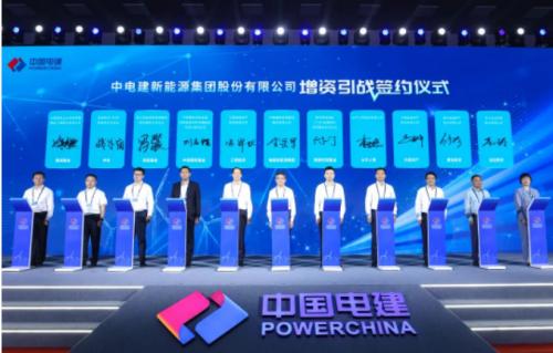 儀式上,中國電建總經(jīng)濟師兼電建新能源集團董事長劉明江作了發(fā)言,電建新能源集團黨委書記、總經(jīng)理、法定代表人李岳軍與南網(wǎng)雙碳基金、工銀投資、太平人壽、中銀資產(chǎn)、中國中車等10家戰(zhàn)略投資人代表共同簽署增資協(xié)議。