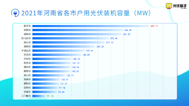 新鄉(xiāng)市是河南省戶用光伏安裝戶數(shù)最高的城市,也是戶用光伏裝機(jī)容量最高的城市,2021年全年安裝了2萬(wàn)戶,447.17MW。