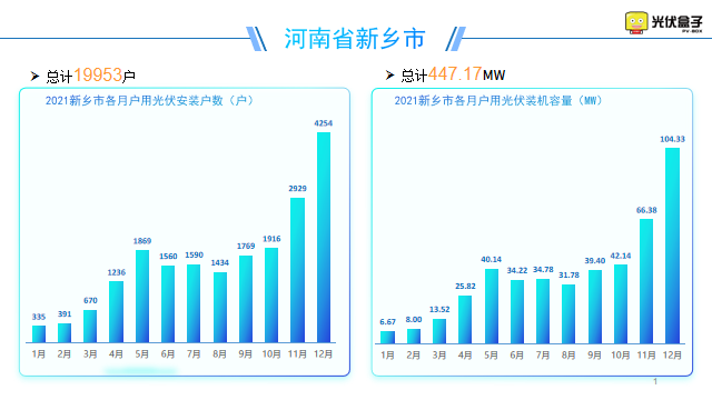 2021年河南省戶用光伏安裝了15.41萬(wàn)戶,12月份安裝戶數(shù)占全年的22.66%。