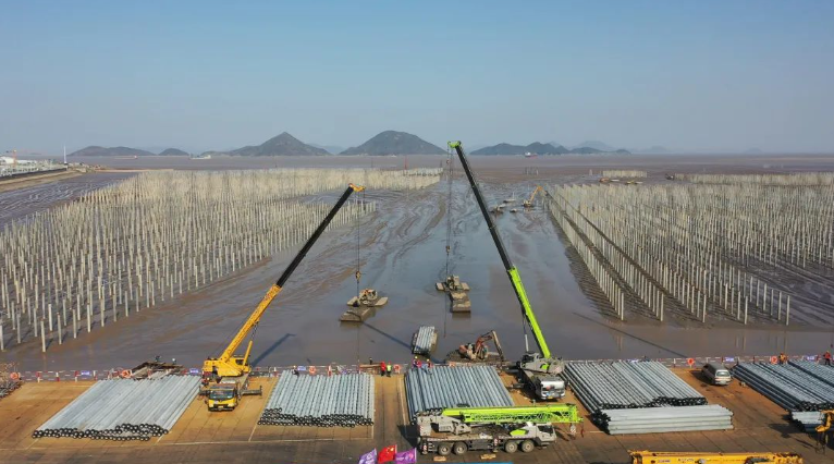 房海達(dá)表示:“我們每天打樁的數(shù)量是四至五百根,等到大潮的時(shí)候我們會(huì)加快速度,爭(zhēng)取在5月份把所有的樁全部打完,至六七月份,組件安裝率達(dá)80%至90%。”