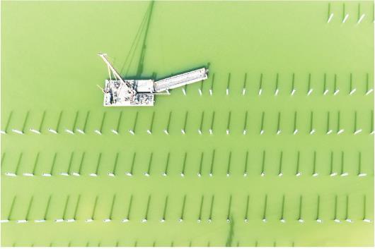 當(dāng)前,樂陵市鐵營(yíng)鎮(zhèn)“漁光互補(bǔ)”分布式光伏發(fā)電項(xiàng)目工程建設(shè)正酣、有序推進(jìn)。該項(xiàng)目利用鐵營(yíng)鎮(zhèn)鹽堿地上905畝閑置坑塘,將漁業(yè)養(yǎng)殖和光伏發(fā)電有效結(jié)合,將實(shí)現(xiàn)生態(tài)效益和經(jīng)濟(jì)效益雙豐收。項(xiàng)目建成后年均發(fā)電量約4454萬千瓦時(shí),可節(jié)約標(biāo)煤約1.36萬噸,減排二氧化碳約3.7萬噸。(記者 盧鵬 通訊員 賈鵬 報(bào)道)