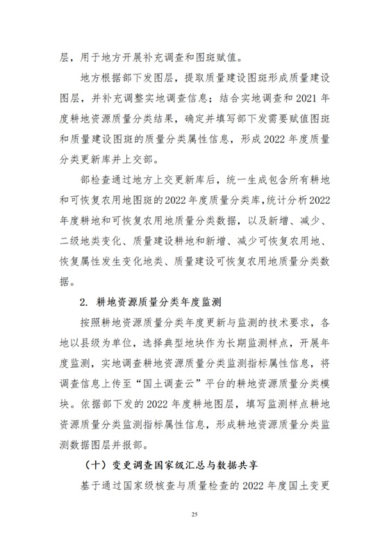 2023年6月15日前,部組織完成2022年度變更調(diào)查最終數(shù)據(jù)庫質(zhì)檢、更新入庫及數(shù)據(jù)匯總分析工作。同時(shí),下發(fā)2022年度耕地資源質(zhì)量分類更新涉及的相關(guān)圖層。