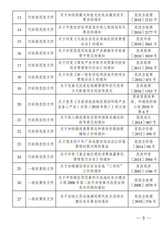 經(jīng)過(guò)清理,決定對(duì)47件規(guī)章、行政規(guī)范性和一般政策性文件予以廢止,其中包括《關(guān)于完善光伏發(fā)電規(guī)模管理和實(shí)行競(jìng)爭(zhēng)方式配置項(xiàng)目的指導(dǎo)意見》等多項(xiàng)跟光伏、風(fēng)電能源領(lǐng)域有關(guān)文件。