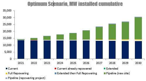 一年前,管道總?cè)萘繛?0GW。從2025年開始,可以看到部署量顯著增加。如果當(dāng)前管道中的每個項(xiàng)目都繼續(xù)進(jìn)行,到2030年英國的陸上風(fēng)電運(yùn)營容量將達(dá)到30GW,是英國目前13.9GW運(yùn)營能力的兩倍之多。