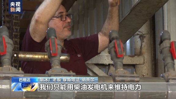 制冰廠老板 穆斯塔法·納賈爾:每供電兩小時會斷電兩小時,在溫度升高時,電力供應(yīng)會更差,停電會持續(xù)四小時,我們只能用柴油發(fā)電機來維持電力。
