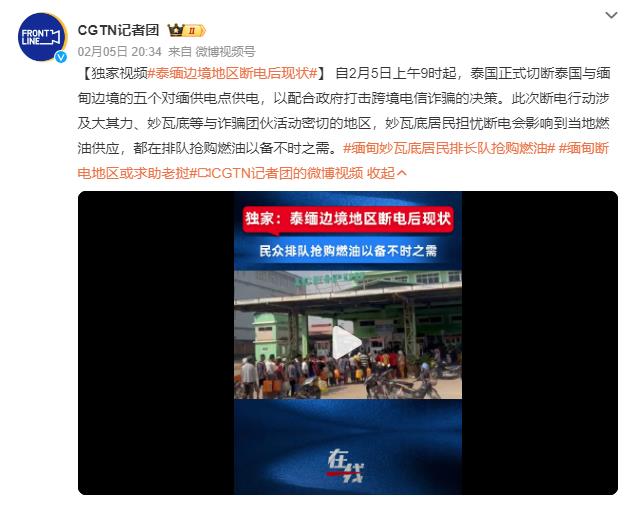 自2月5日上午9時起,泰國正式切斷泰國與緬甸邊境的五個對緬供電點供電,以配合政府打擊跨境電信詐騙的決策。