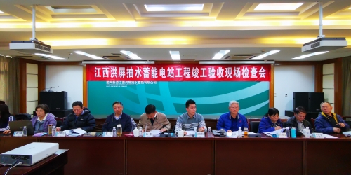 驗收委員會會議于2019年12月6日在南昌召開。會議由王忠耀副院長主持。會議首先由主任委員王忠耀介紹了竣工驗收的依據(jù)、程序和驗收委員會成員,隨后,工程運行管理單位洪屏公司李幼勝董事長致詞,會議先后聽取了洪屏抽水蓄能有限公司關(guān)于工程建設、電站運行管理及竣工驗收專項驗收情況的匯報,設計院關(guān)于工程設計情況的匯報,以及驗收專家組關(guān)于驗收結(jié)論意見的介紹。與會各位委員、代表就工程竣工驗收條件和存在的問題進行了研究和討論。驗收委員會同意江西洪屏抽水蓄能電站通過工程竣工驗收。