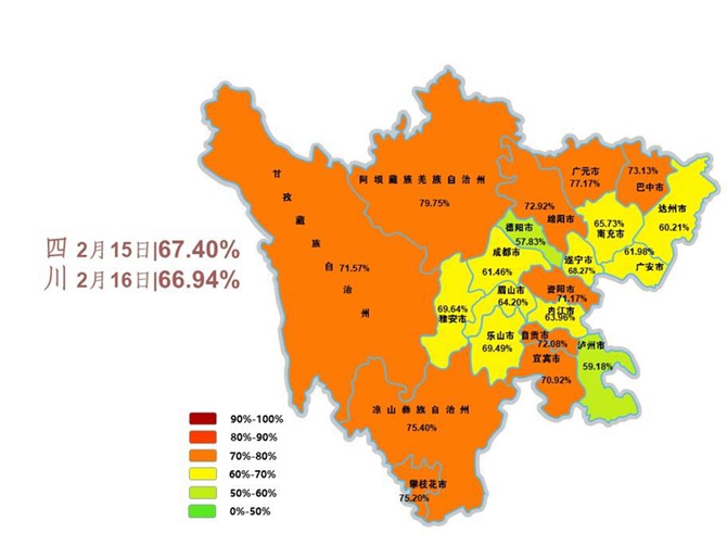 2月16日各市(州)復(fù)產(chǎn)情況分布圖