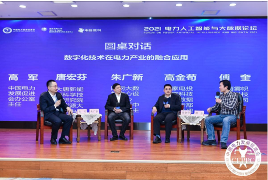 對話環(huán)節(jié),主持人中國電力發(fā)展促進會辦公室主任高軍與大唐新能源科學技術研究院新能源大數(shù)據(jù)中心副主任唐宏芬(線上)、國網(wǎng)大數(shù)據(jù)中心設計中心(創(chuàng)新中心)副主任朱廣新、國家電投數(shù)字科技公司數(shù)據(jù)與分析部高級經(jīng)理高金茍、上海霧幟智能科技有限公司CTO傅奎四位行業(yè)專家,以”數(shù)字化技術在電力產(chǎn)業(yè)的融合應用”為主題,從國網(wǎng)大數(shù)據(jù)中心、國家電投數(shù)科以及大唐新能源公司在數(shù)據(jù)治理、應用、開放、共享實踐經(jīng)驗展開分析,就如何推進數(shù)字化技術與電力行業(yè)的深度融合、推動電網(wǎng)企業(yè)生產(chǎn)、經(jīng)營、管理、服務業(yè)態(tài)的深度變革進行深入探討。