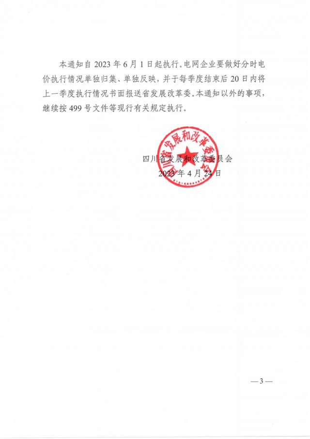 4月24日,四川省發(fā)展和改革委員會(huì)發(fā)布《關(guān)于調(diào)整我省分時(shí)電價(jià)機(jī)制的通知》,對(duì)峰平谷時(shí)段、大型商業(yè)用戶(hù)電價(jià)機(jī)制調(diào)整進(jìn)行了說(shuō)明,將在6月1日起執(zhí)行,詳情如下: