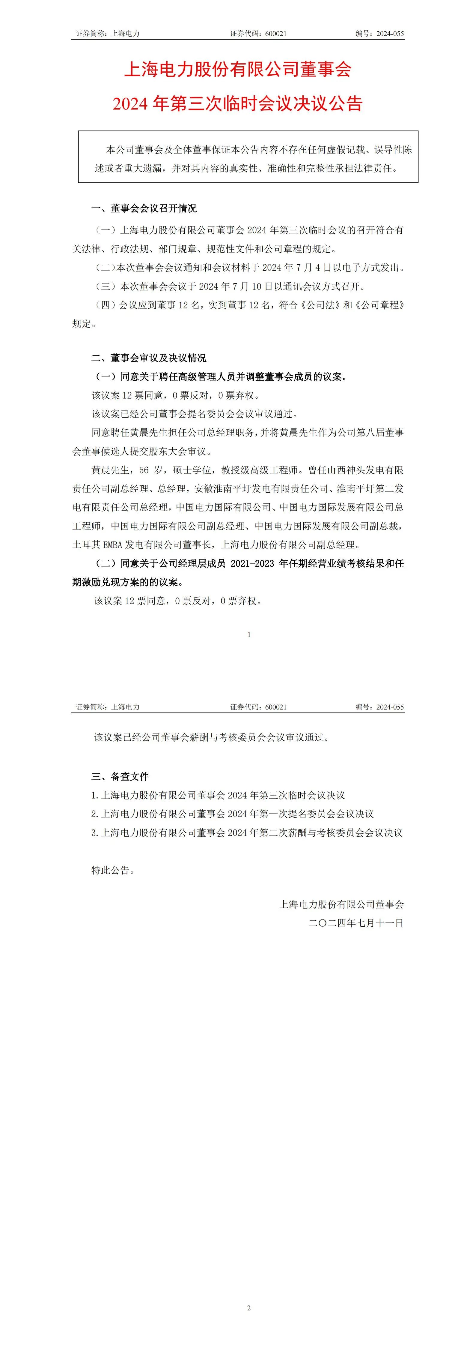 7月11日,上海電力公告,董事會同意關(guān)于聘任高級管理人員并調(diào)整董事會成員的議案,同意聘任黃晨先生擔任公司總經(jīng)理職務,并將黃晨先生作為公司第八屆董事會董事候選人提交股東大會審議。