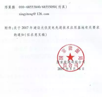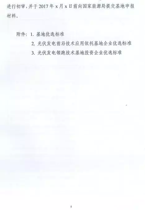 以下為《關(guān)于2017年建設(shè)光伏發(fā)電先進技術(shù)應(yīng)用基地有關(guān)要求的通知》(征求意見稿)