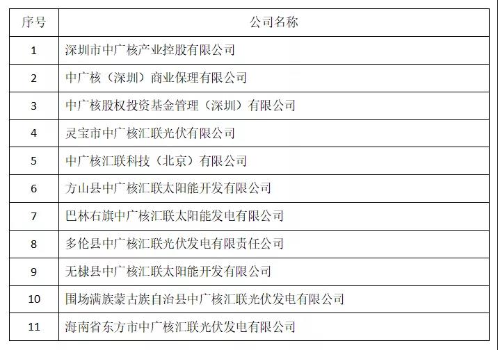 二、經(jīng)檢索查詢發(fā)現(xiàn),目前有深圳市中廣核產(chǎn)業(yè)控股有限公司、中廣核(深圳)商業(yè)保理有限公司等11家公司(附表)冒名使用“中廣核”字號或商標(biāo),對我集團(tuán)品牌造成嚴(yán)重侵權(quán)。