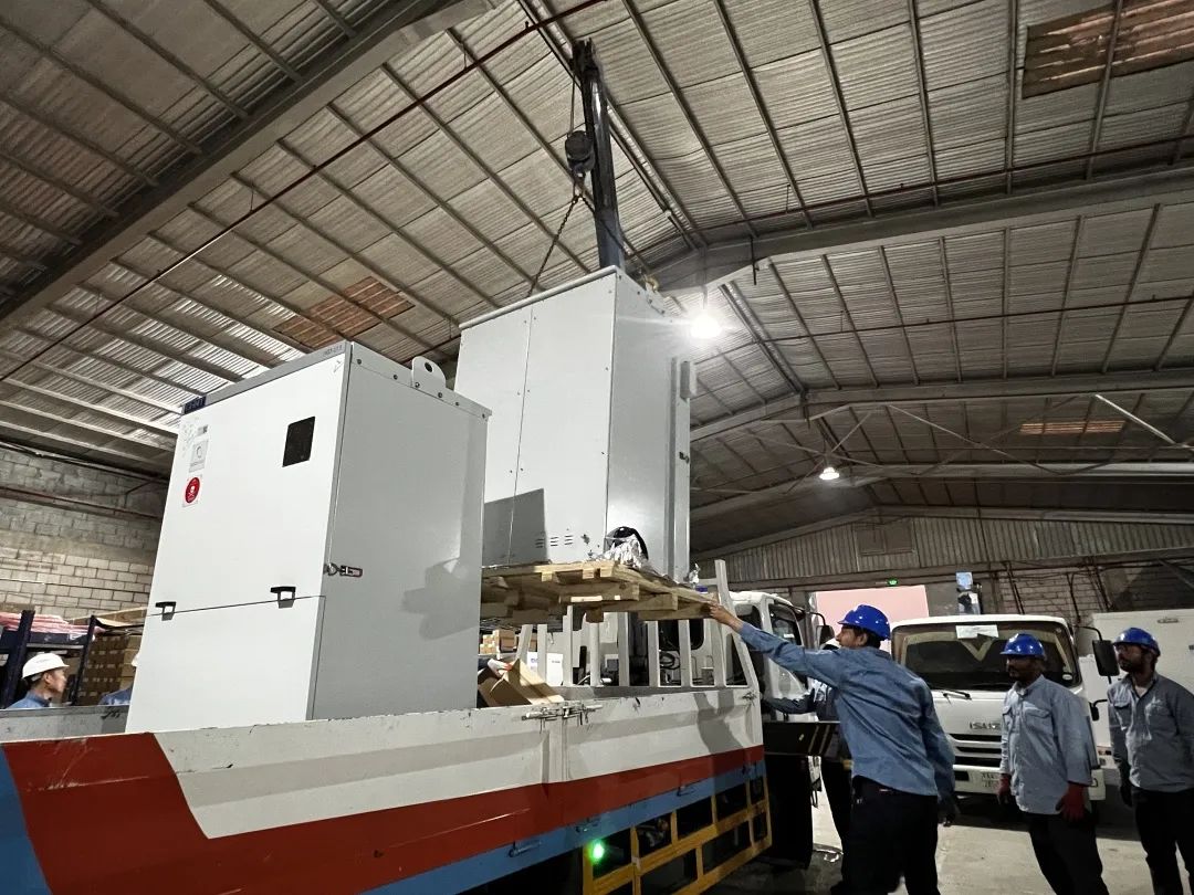 “我們要趁著太陽(yáng)還沒(méi)升起,盡可能把今天的施工進(jìn)度往前趕。”今年49歲的蔡永平是中國(guó)電力技術(shù)裝備有限公司沙特分公司總經(jīng)理,也是沙特?cái)?shù)字化智能環(huán)網(wǎng)柜項(xiàng)目負(fù)責(zé)人。此刻,他正與當(dāng)?shù)胤职添?xiàng)目總監(jiān)扎卡里亞確認(rèn)當(dāng)天的施工計(jì)劃,確保每一支施工隊(duì)伍都能在倉(cāng)庫(kù)領(lǐng)到需要安裝的環(huán)網(wǎng)柜設(shè)備及配件。