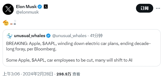 蘋果被曝已于周二宣布取消電動(dòng)車項(xiàng)目 2000名員工當(dāng)場驚呆