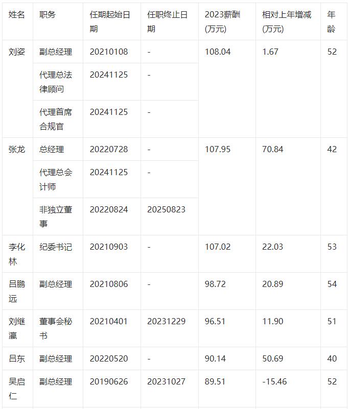 根據(jù)2023年報(bào)數(shù)據(jù),剔除獨(dú)立董事、監(jiān)事會(huì)主席、監(jiān)事后,三峽能源共有13位董事和高級(jí)管理人員。從年齡看,三峽能源董事和高級(jí)管理人員平均年齡為50.23歲,年齡中位數(shù)為52歲,其中,非獨(dú)立董事蔡庸忠年齡最高為62歲,副總經(jīng)理呂東年齡最小為40歲。從薪酬看,董事和高級(jí)管理人員合計(jì)領(lǐng)取報(bào)酬904.35萬元,平均薪酬86.18萬元,年薪中位數(shù)為98.72萬元。其中,副總經(jīng)理、代理總法律顧問及代理首席合規(guī)官劉姿薪酬最高為108.04萬元,非獨(dú)立董事蔡庸忠薪酬最低為6.00萬元(2023年任期不滿1年的不參與統(tǒng)計(jì))。