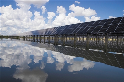 大慶油田星火水面光伏示范工程現(xiàn)場。