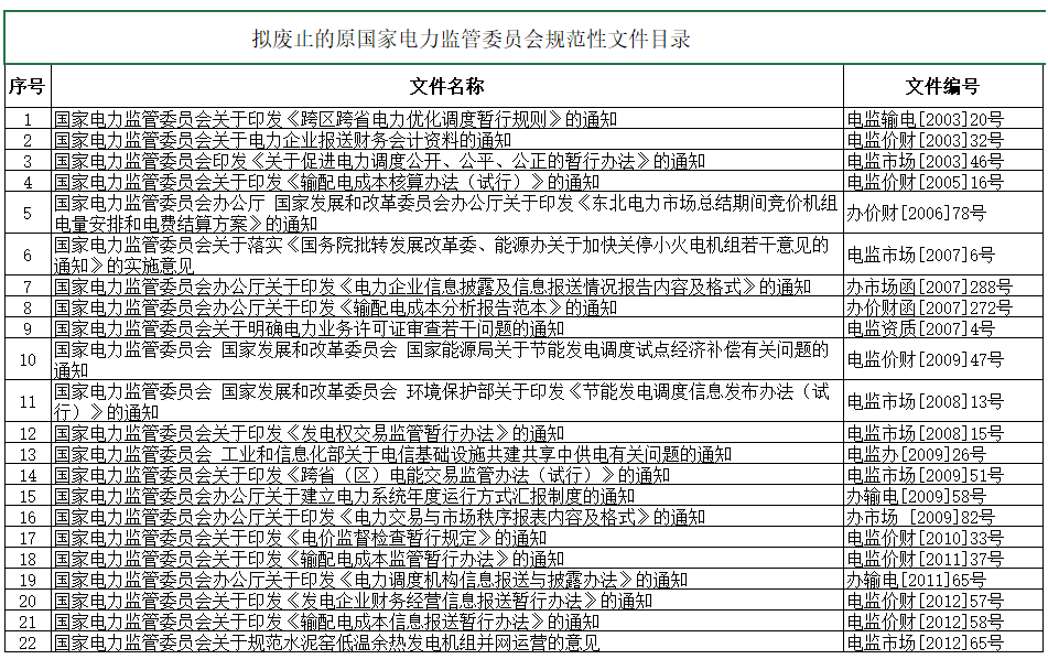 附件:擬廢止的原國家電力監(jiān)管委員會規(guī)范性文件目錄