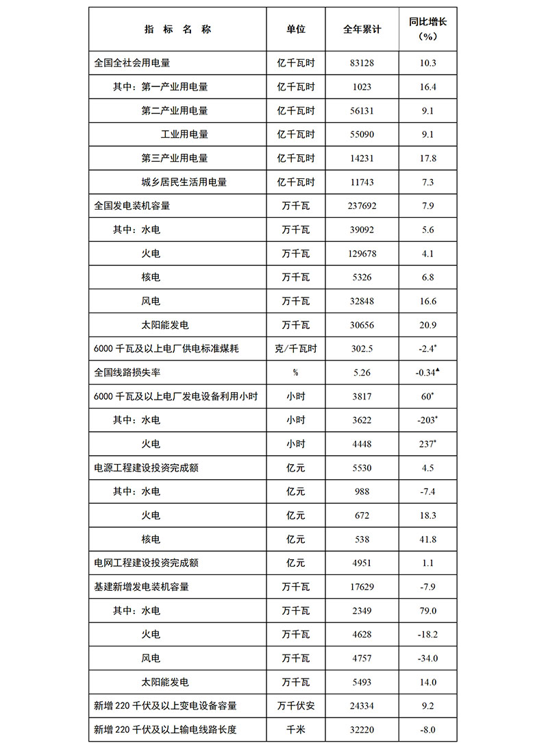 注:1.全社會用電量為全口徑數(shù)據(jù),全國供電量為調(diào)度口徑數(shù)據(jù)。2.“同比增長”列中,標*的指標為絕對量;標▲的指標為百分點。
