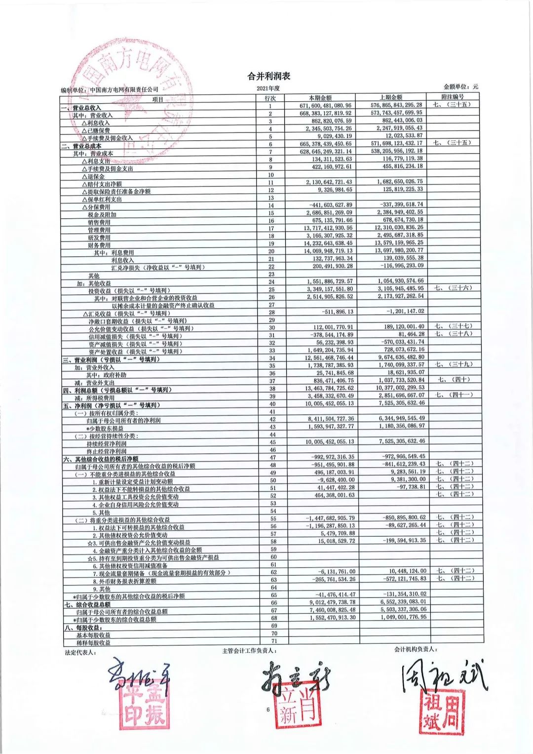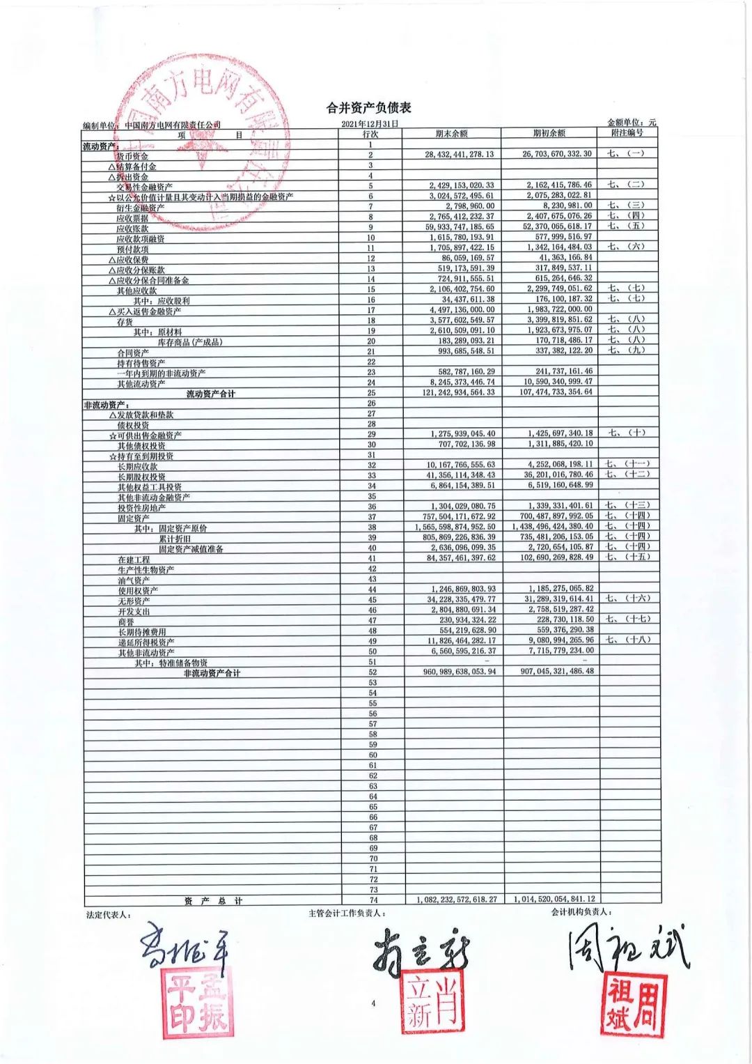 本網(wǎng)訊 4月29日,中國南方電網(wǎng)有限責任公司發(fā)布2021年財務報告。