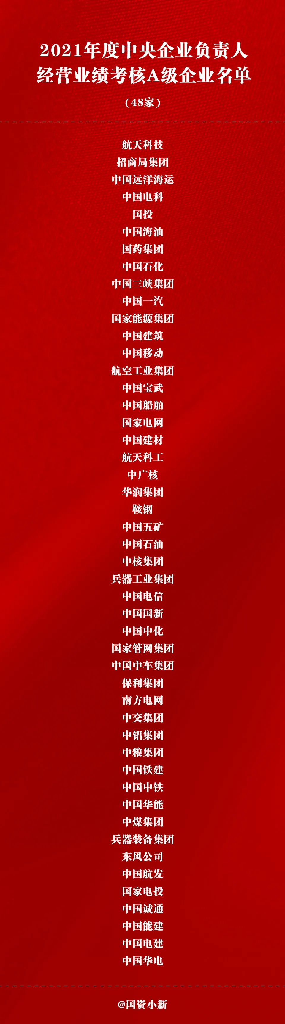 2021年度考核結果為A級的企業(yè)48家,2019-2021年任期考核結果為A級企業(yè)46家。