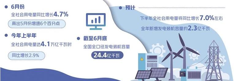 “隨著疫情逐步緩解,穩(wěn)經(jīng)濟(jì)政策效果加快顯現(xiàn),疊加多地高溫天氣因素,6月份全社會(huì)用電量同比增長4.7%,高出5月份增速6個(gè)百分點(diǎn)。”在近日召開的全國電力供需形勢(shì)半年報(bào)發(fā)布會(huì)上,中國電力企業(yè)聯(lián)合會(huì)秘書長郝英杰表示,6月份電力消費(fèi)增速明顯回升,一定程度上反映出當(dāng)前復(fù)工復(fù)產(chǎn)、復(fù)商復(fù)市取得積極成效。
