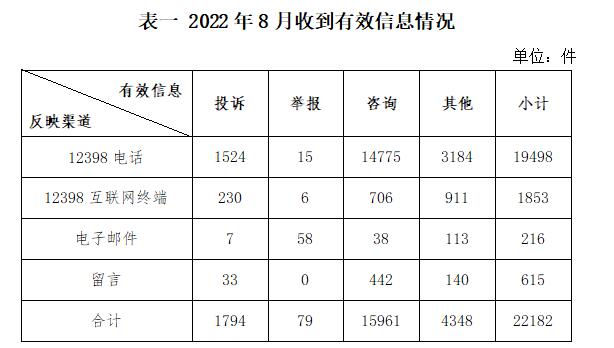 2022年8月收到的有效信息中: