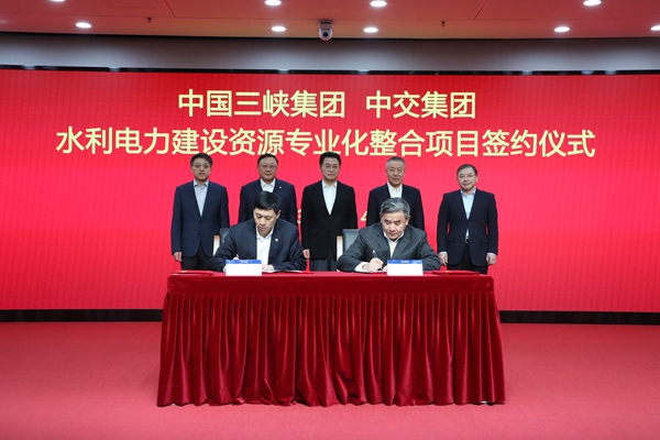 2023年1月14日,中國(guó)三峽集團(tuán)與中交集團(tuán)水利電力建設(shè)資源專業(yè)化整合項(xiàng)目簽約儀式在北京舉行,國(guó)資委黨委委員、副主任翁杰明出席儀式并講話。