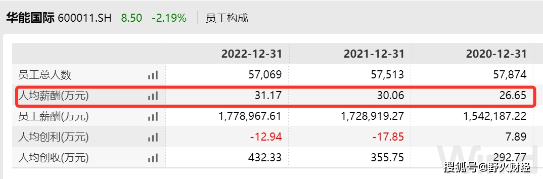 華能國(guó)際薪酬總額大約178億元,人均薪酬超過(guò)31萬(wàn)元,比2021年的30萬(wàn)元又增加1萬(wàn)元;2020年人均薪酬大約26.7萬(wàn)元。